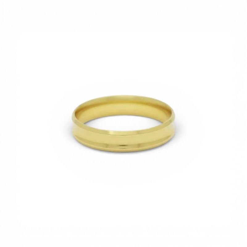 Aliança côncava semi anatômica de 4mm em ouro 18K, com acabamento polido e brilho intenso. Design elegante que une conforto e sofisticação, ideal para simbolizar compromisso e eternidade com qualidade e durabilidade.