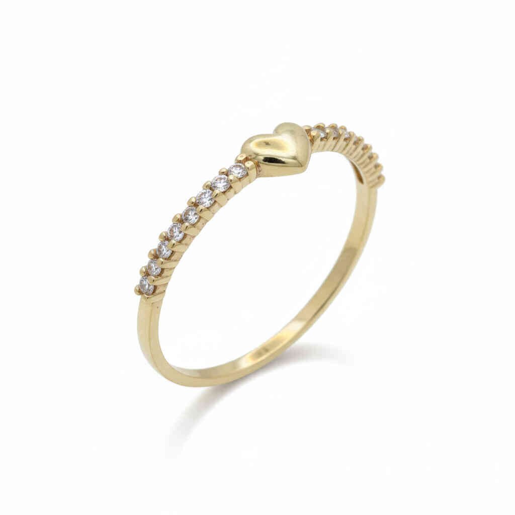 Anel produzido em ouro 10k (41,7% ouro puro), um material conhecido pela boa durabilidade e por ser mais resistente ao desgaste em comparação às ligas mais macias. A peça apresenta zircônias lapidadas que valorizam o brilho e um coração liso no centro, ideal para quem busca estilo com preço acessível.