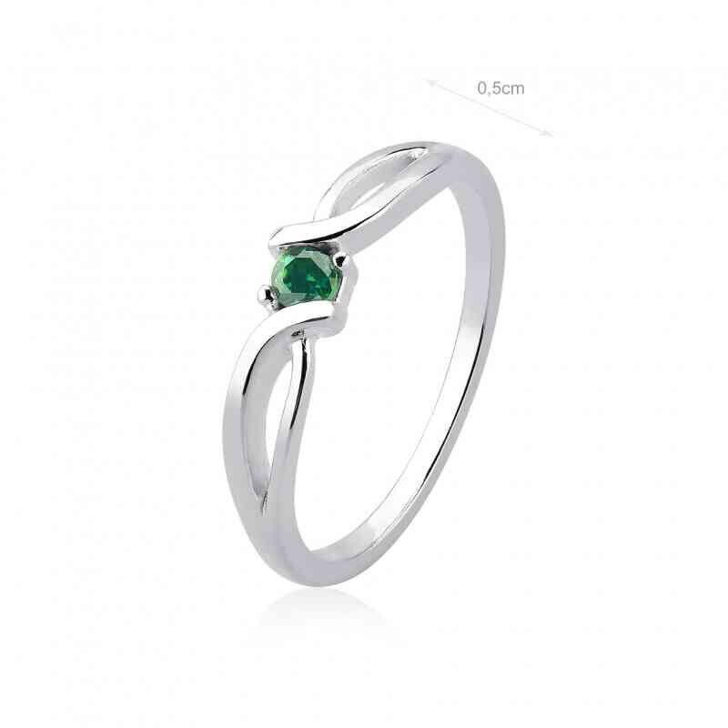 Anel Prata com Pedra Verde