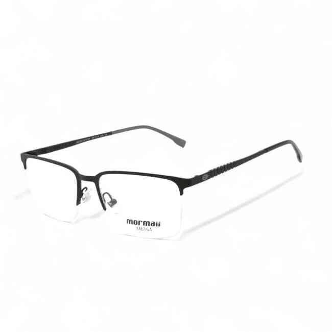 Esse modelo em metal preto fosco, com aro aberto e formato quadrado, é ideal para quem busca um visual mais leve e elegante. Conta com apoio nasal com plaquetas ajustáveis, garantindo conforto e encaixe perfeito no rosto.