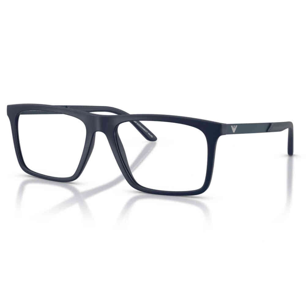 O modelo da Emporio Armani traz um design retangular com acabamento azul fosco, ideal para homens que buscam um visual moderno e elegante. Fabricado em acetato ou grilamid, combina leveza, resistência e conforto para o uso diário.