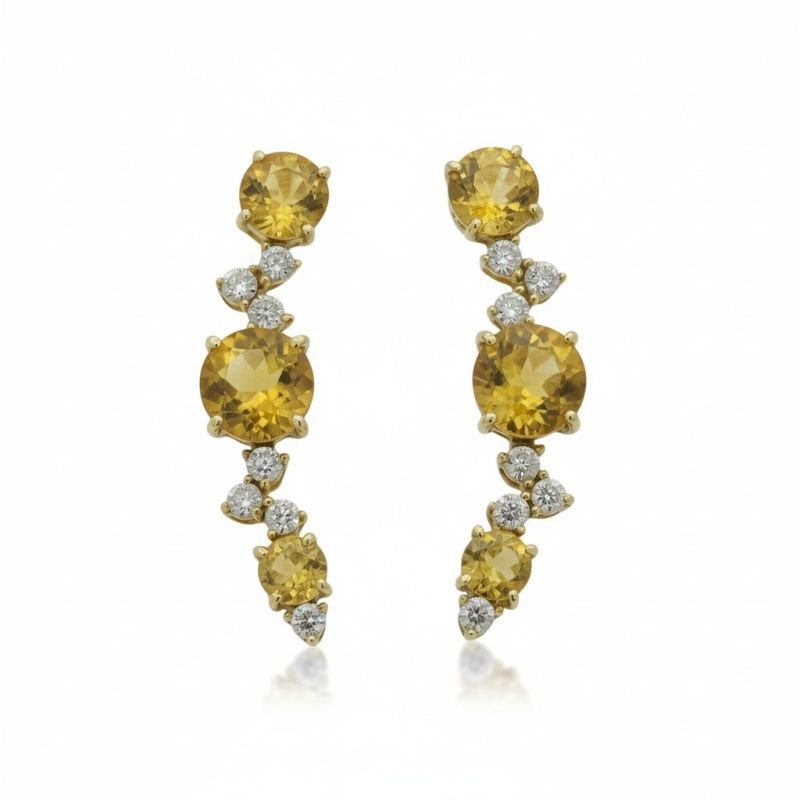 Um toque de luz e sofisticação. Este brinco em ouro 18K combina pedras amarelas vibrantes com zircônias cuidadosamente lapidadas, criando um brilho delicado e marcante. Seu design curvado valoriza o rosto e traz elegância ao visual, perfeito para transformar qualquer produção.