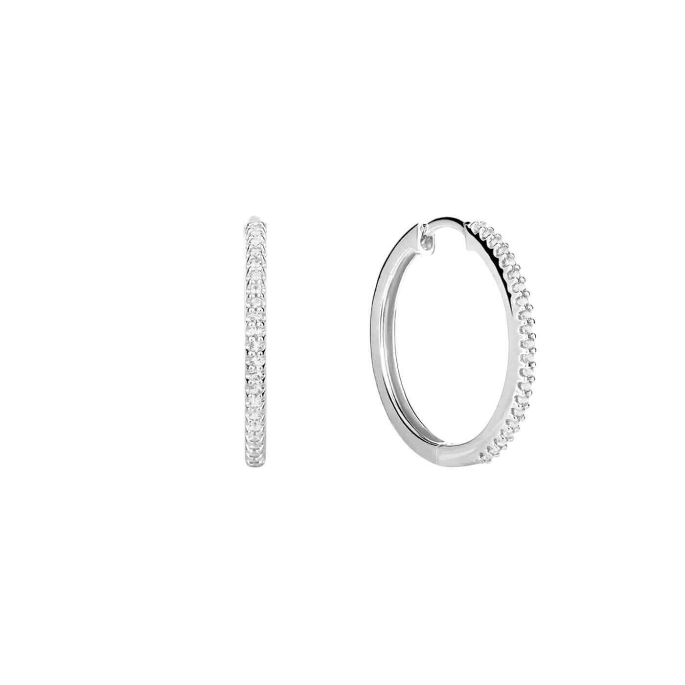 Brinco em Prata 925 tipo argola média com zircônias brancas, clássico e elegante, perfeito para realçar o brilho do seu dia a dia.