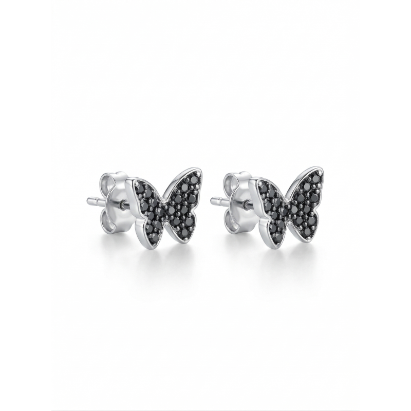 Brinco em Prata 925 com design de borboleta em detalhe preto, trazendo um contraste moderno e elegante. Pequeno e delicado, é a escolha perfeita para quem busca estilo com um toque de personalidade no dia a dia.