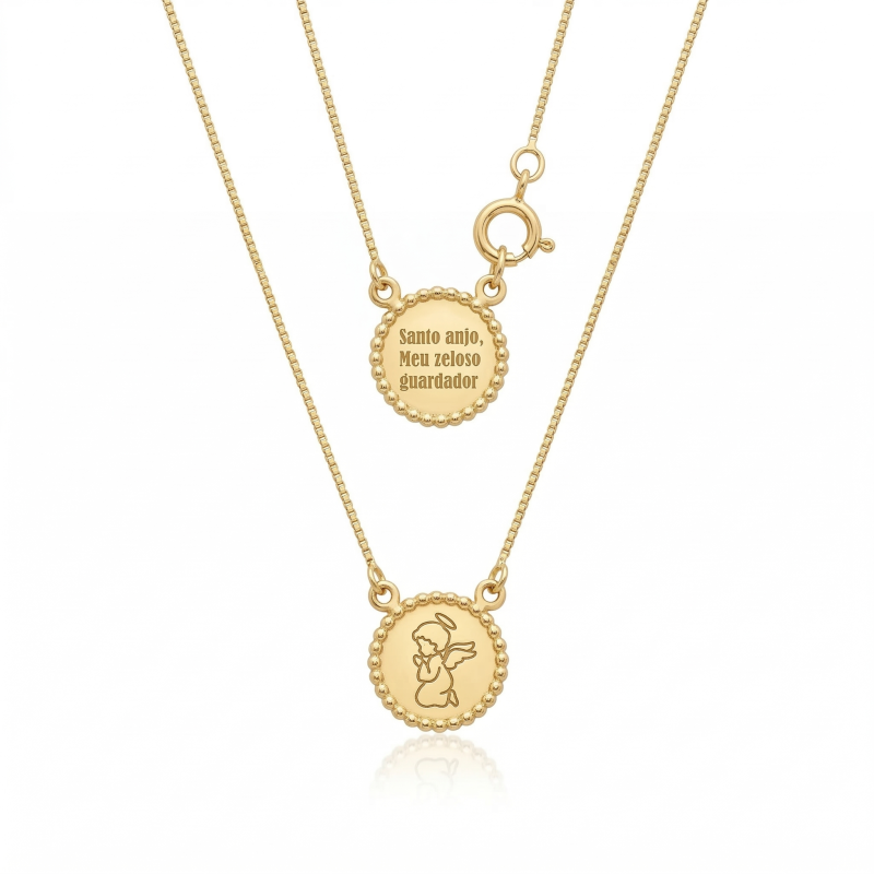 O Escapulário Infantil Santo Anjo em Ouro 18K é uma joia delicada e cheia de significado, ideal para representar proteção e fé desde a infância. Suas medalhas trazem a frase “Santo anjo, meu zeloso guardador”, simbolizando cuidado e proteção divina.