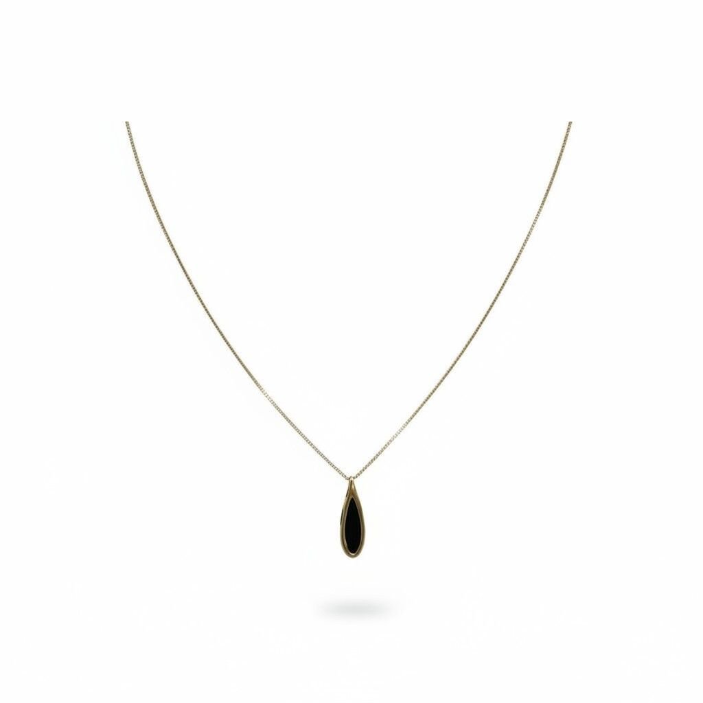 Gargantilha em Ouro 18K com pingente gota em acabamento preto, delicadamente polido. Um design minimalista e sofisticado, perfeito para realçar qualquer look com elegância.