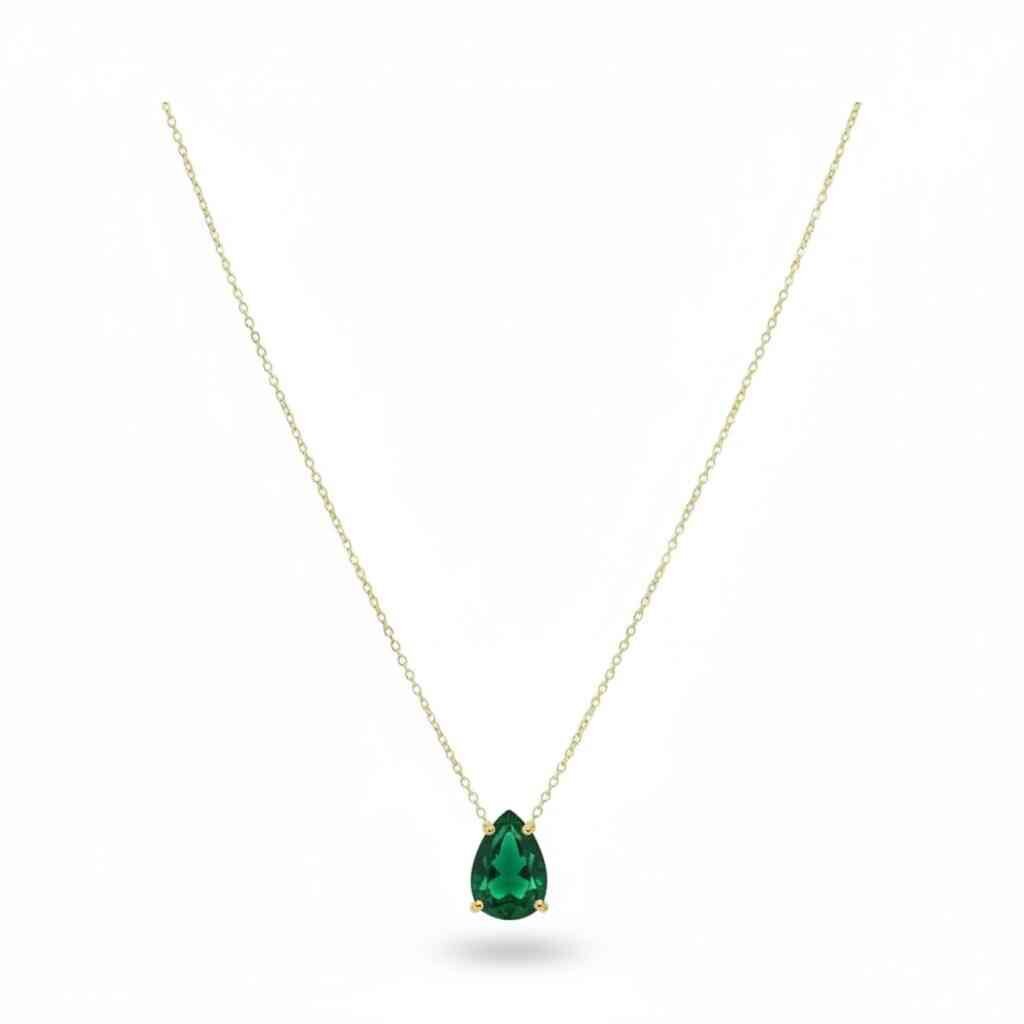 Gargantilha em Ouro 18K com Pedra Esmeralda em lapidação Gota.