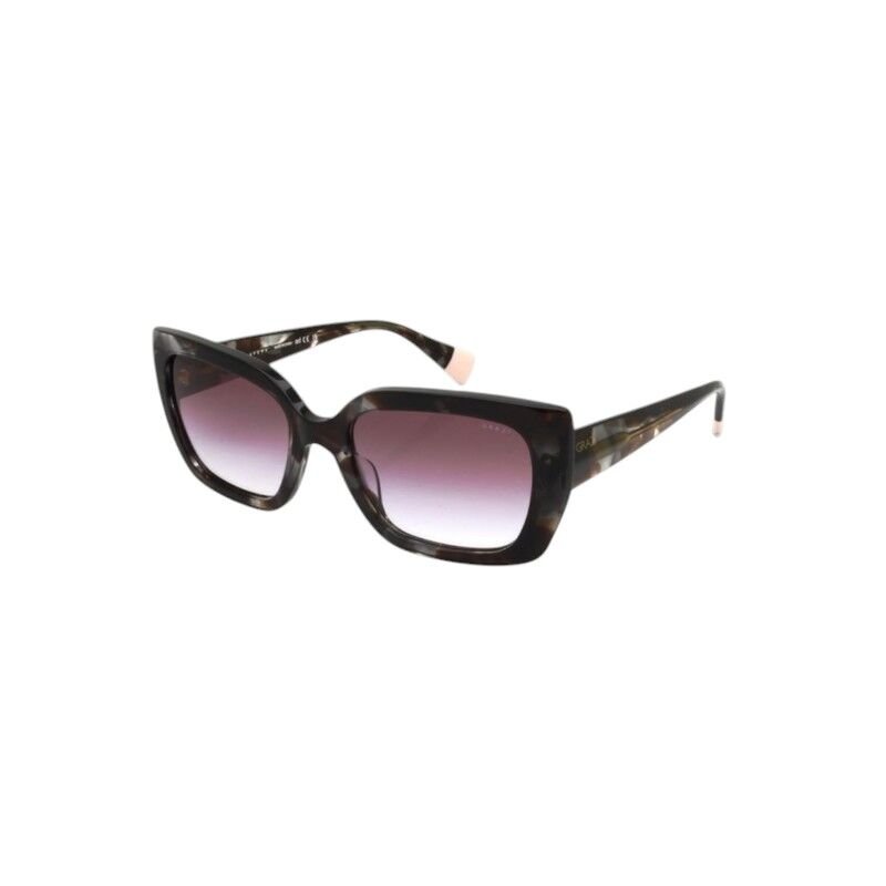 O modelo Grazi GZ4060L combina elegância e conforto com um toque retrô. A armação em acetato marrom tartaruga tem formato retangular, ideal para diversos tipos de rosto. As lentes em policarbonato degradê rosado oferecem 100% de proteção UV e conforto visual.