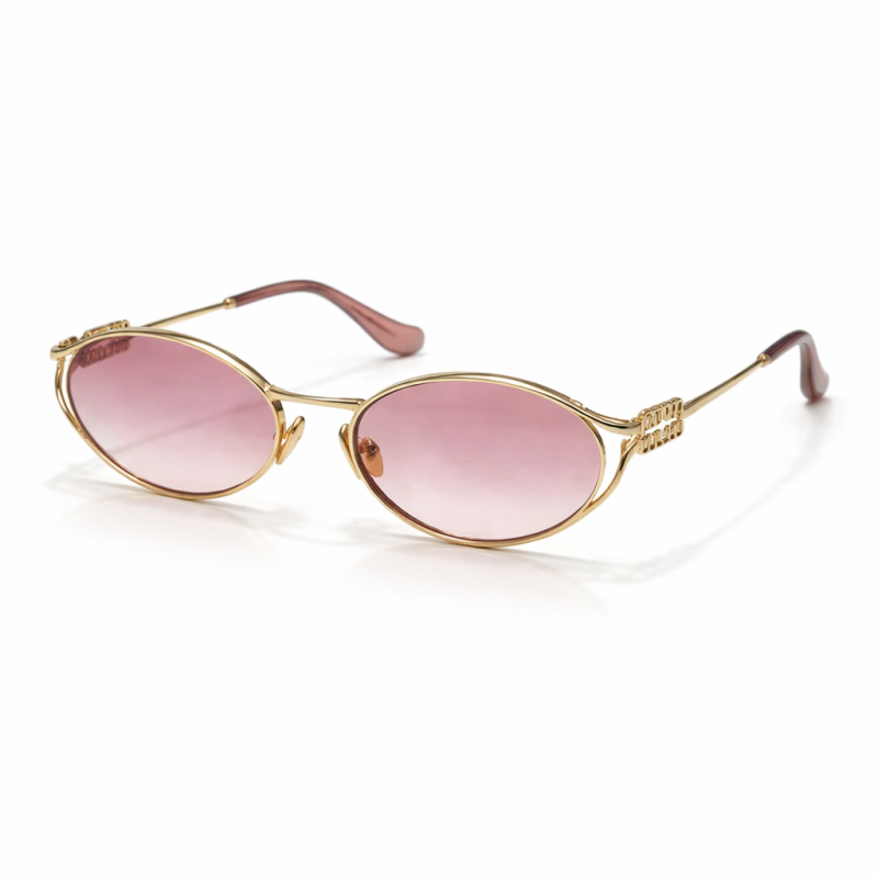 Este óculos apresenta um design sofisticado com armação metálica dourada, trazendo um visual elegante e contemporâneo. Com proteção UV. As lentes possuem um tom rosa suave com leve transparência, garantindo estilo e conforto visual. As hastes finas, também douradas, contam com pontas em acetato vinho, proporcionando melhor encaixe e durabilidade. Detalhes curvados próximos às lentes acrescentam um toque diferenciado e artesanal ao modelo.