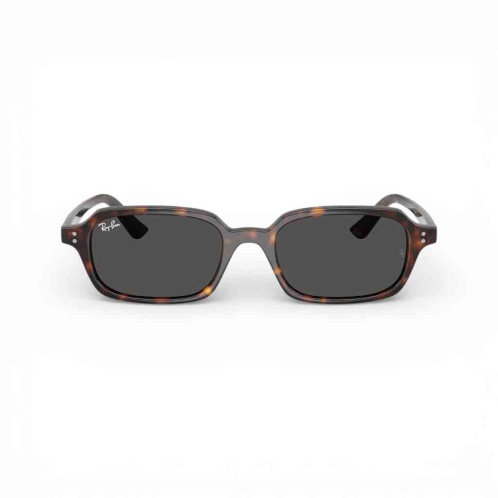 Óculos de sol Ray-Ban RB4455135987 com design retangular de cantos arredondados, que une estilo retrô e modernidade. A armação injetada em tom havana/marrom oferece leveza e conforto, enquanto as lentes cinza-escuro em biopoliamida garantem proteção e excelente qualidade visual. Modelo unissex, ideal para quem busca sofisticação e versatilidade no dia a dia.
