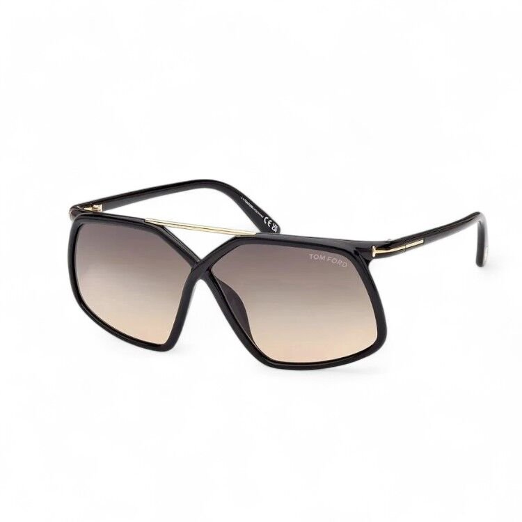 O Tom Ford Meryl 1038 01B traz um design moderno e sofisticado com armação borboleta quadrada em acetato preto. Destaque para a elegante barra superior de metal e o icônico logo “T” em metal, que conferem um toque de luxo e exclusividade.