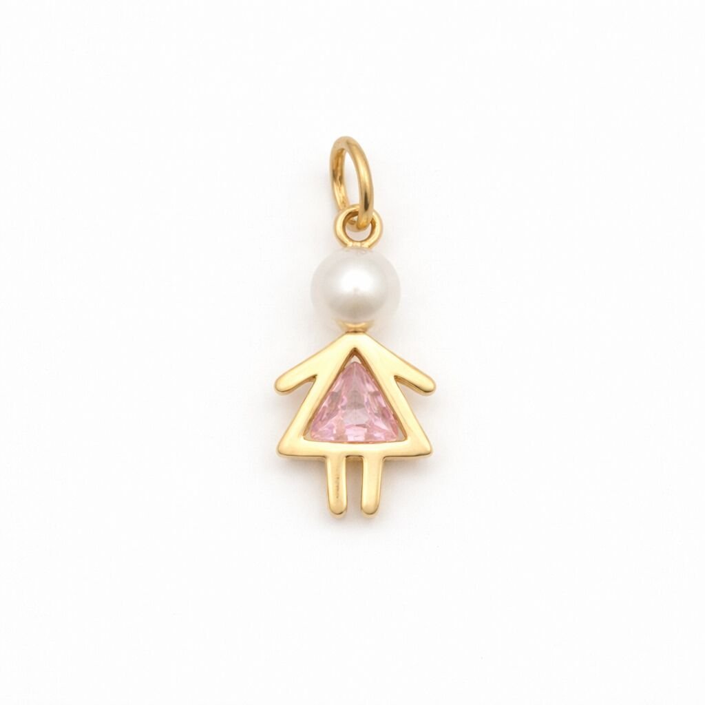 Delicado pingente em ouro 18K com 1cm, design minimalista de menina, simbolizando amor, proteção e laços eternos. Uma joia leve, charmosa e versátil, perfeita para uso diário ou para presentear em momentos especiais como nascimento, maternidade ou datas comemorativas. Acabamento dourado suave, com brilho discreto e atemporal.