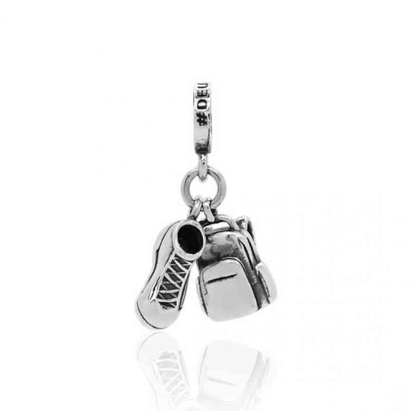 O pingente traz uma mochila e um tênis em prata, representando aventuras, companheirismo e momentos inesquecíveis juntos.