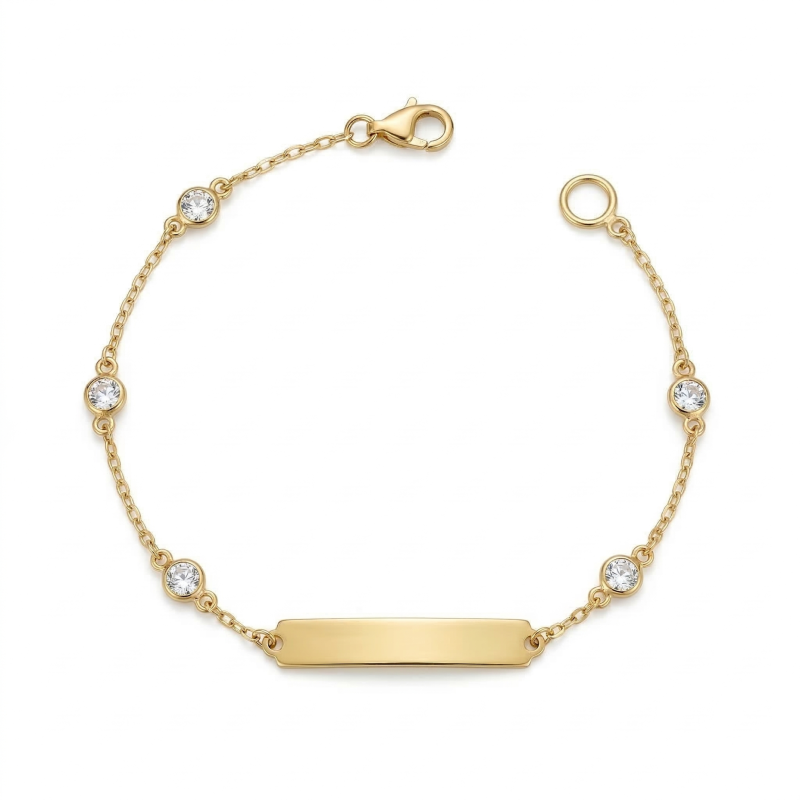 Pulseira Chapa com Zircônia Branca Ouro 18K – 15,5 cm