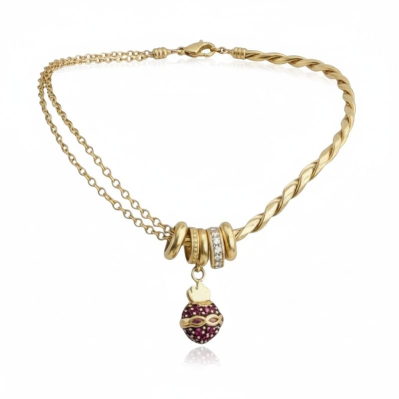 Pulseira em Ouro 18K com design duplo e acabamento torcido, Uma joia versátil, perfeita para quem busca destaque com delicadeza e autenticidade.