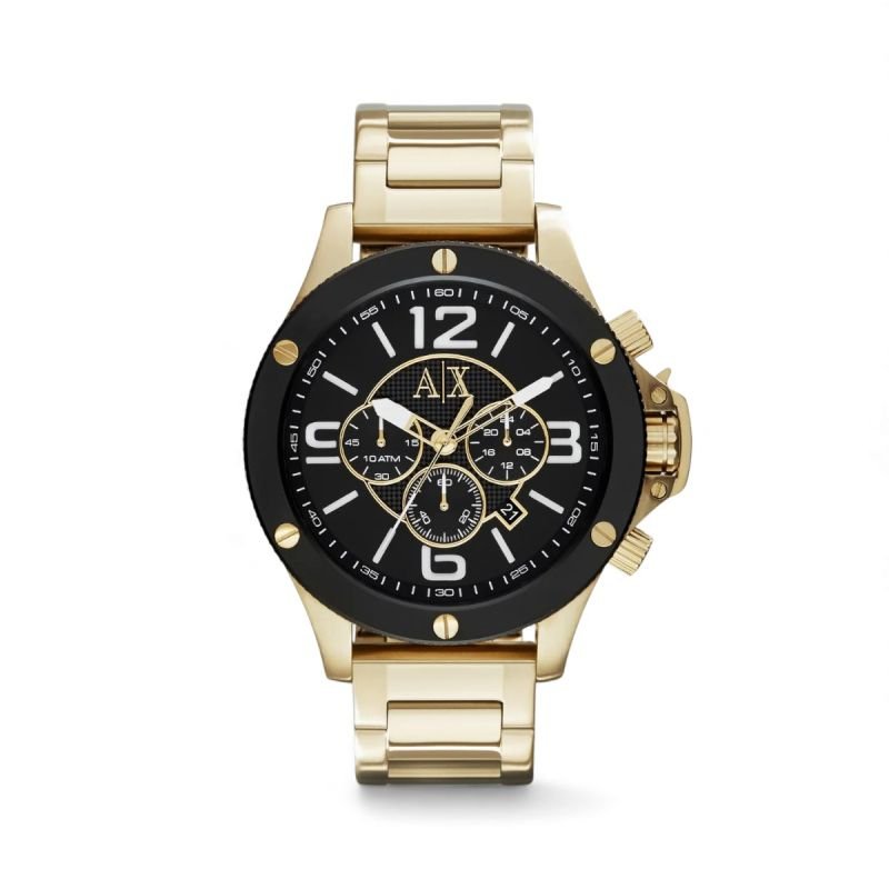 O Relógio Armani Exchange Masculino AX1511B1-P2KX oferece um visual imponente com toque urbano e funcionalidade avançada. Com caixa grande de 49 mm em aço inox dourado e mostrador preto, o modelo segue a tendência cronógrafo com três subdials funcionais e janela de data discreta. O design robusto conta com luneta preta e parafusos decorativos, reforçando o estilo esportivo e moderno.