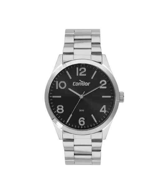 - O relógio masculino prateado Condor é um acessório social versátil, que pode ser usado em qualquer ocasião e valoriza o seu estilo em todos os momentos. O modelo tem mostrador em preto, pulseira de aço e resistência à água de 3 ATM.