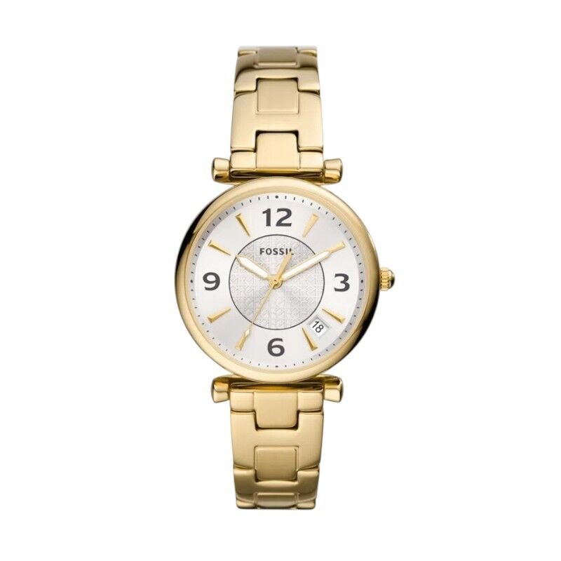 Super sofisticado e variado, a linha Carlie é um grande sucesso! Com banho dourado, esse relógio analógico também conta com uma caixa de aço redonda de 35mm e resistência de 5ATM.
