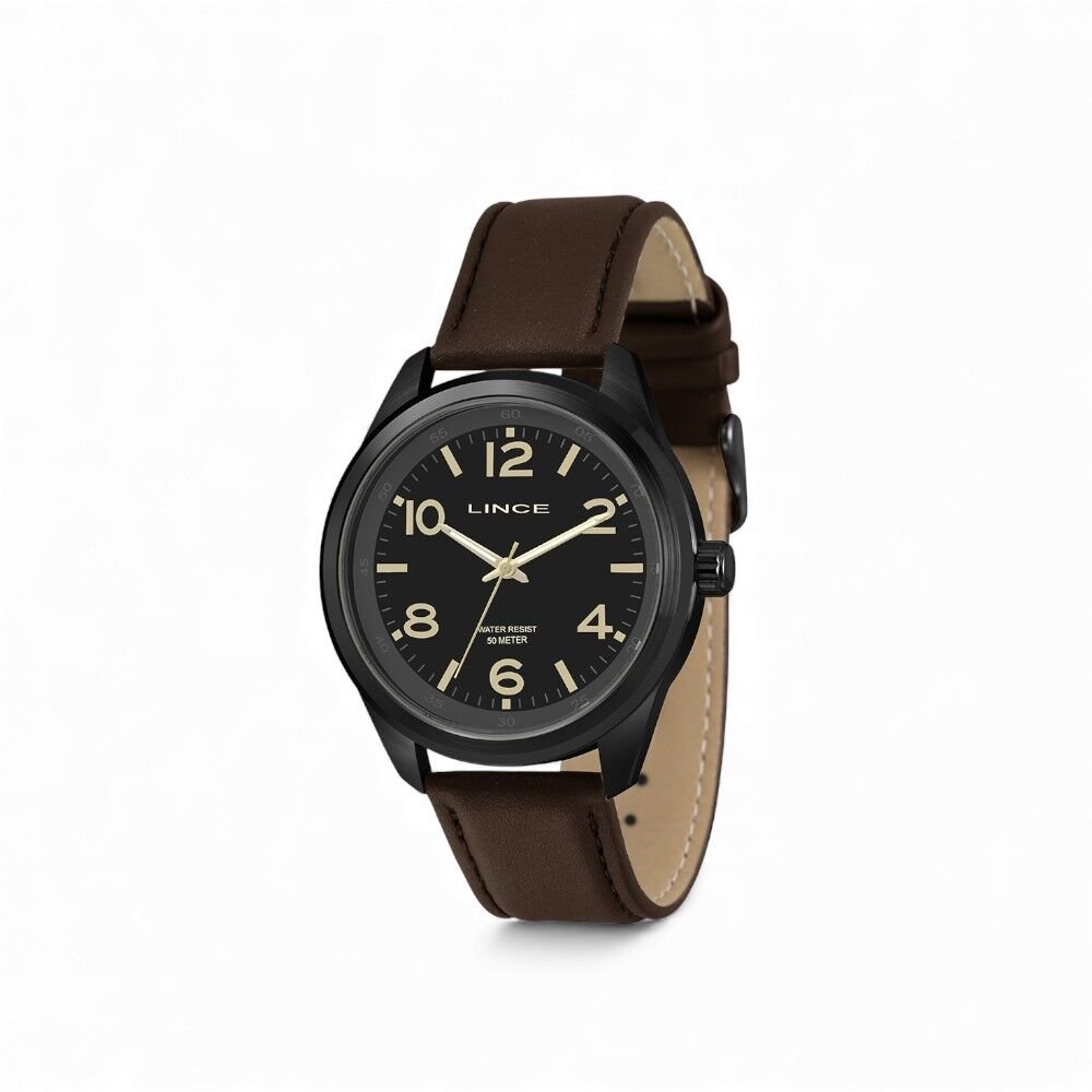 Relógio Lince Masculino, com design moderno e imponente. Possui visor preto e caixa de 46 mm, oferecendo presença marcante no pulso. A pulseira em couro garante conforto e elegância para o uso diário. Conta com vidro em cristal mineral e resistência à água de até 50 metros, unindo estilo, praticidade e durabilidade.
