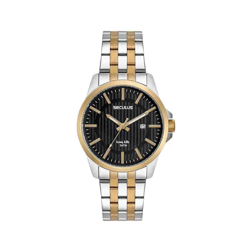 Este relógio analógico combina funcionalidade e estilo com um calendário integrado, marcadores geométricos e um visor texturizado. A folheação bicolor com o visor escuro em destaque adicionam um toque de modernidade. Com uma caixa de 4,2 cm de diâmetro, o relógio se ajusta confortavelmente a todos os tamanhos de pulso. A pulseira mesclada em aço escovado e polido oferece durabilidade e um acabamento sofisticado, tornando este relógio uma escolha perfeita para qualquer ocasião.