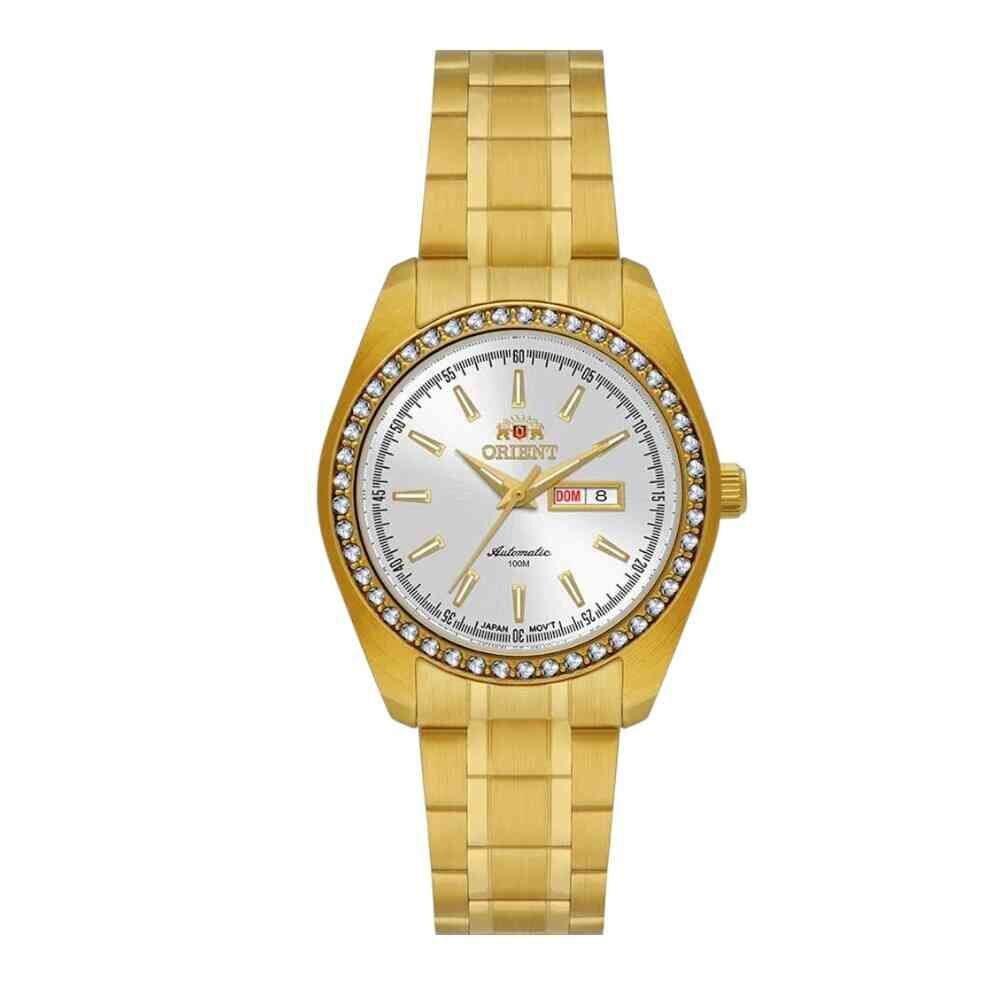 Possui mecanismo Automático, a pulseira é na cor Dourado, fabricada em Aço, com 23 cm de comprimento e possui Fecho Dobrável. A Caixa (peça onde fica o mostrador) é fabricada em Aço, possui fundo do tipo Rosqueado, mede 3,2 cm de diâmetro, sem considerar a coroa, e 1,1 cm de espessura, o que é considerado tamanho Médio para relógios do gênero feminino. Tem nível de resistência à água especificado em 10 ATM. Com relação as funções adicionais do relógio: possui Calendário Analógico com data e dia da semana.